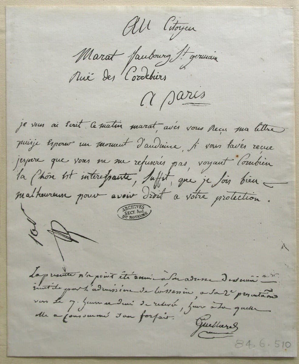 Lettre de Charlotte Corday à Marat