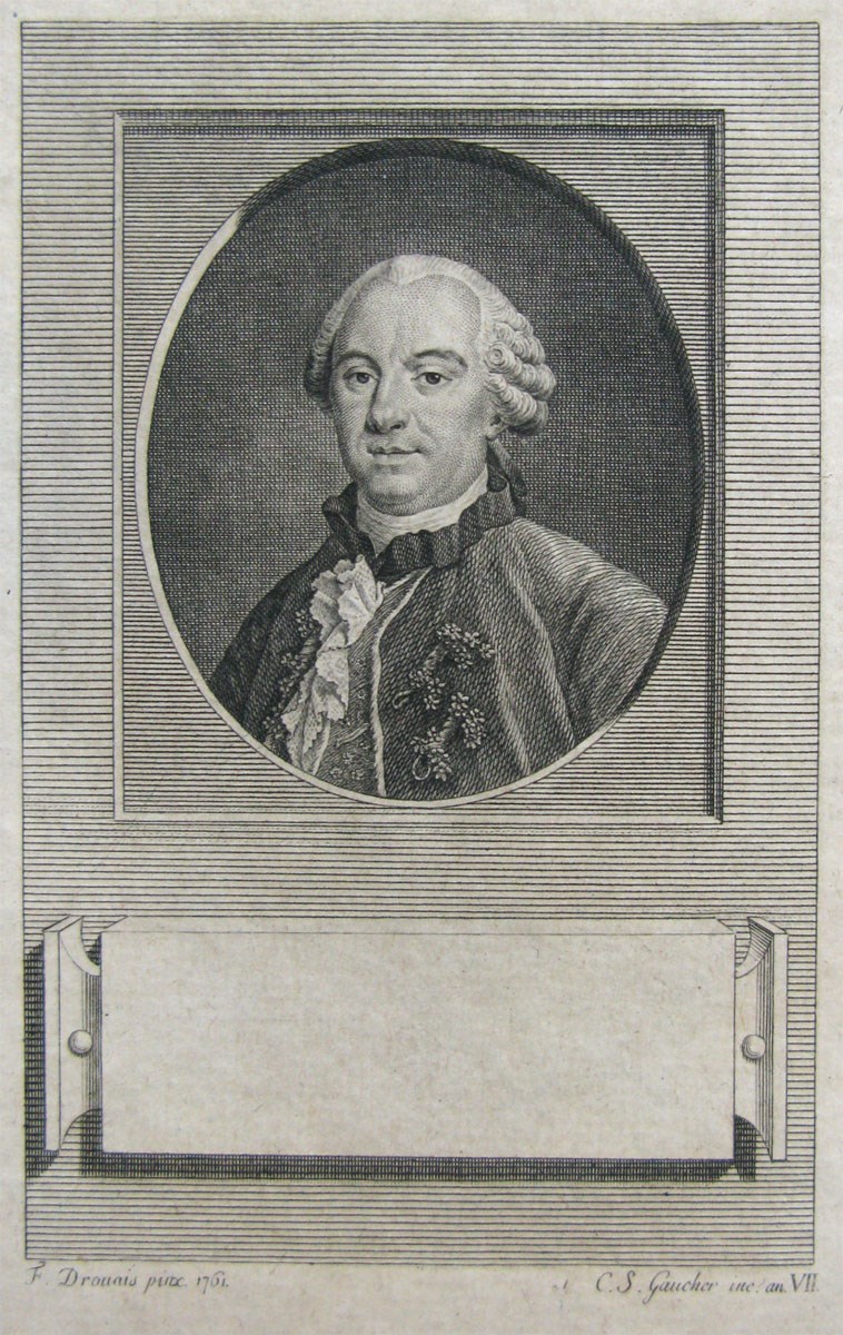 Face, en bas à gauche : Sous la gravure, F. Drouais pinx. 1761 ; Face, en bas à droite : Sous la gravure, C. S. Gaucher inc. an VII. ; (Français), Face : Sur le montage, P.B.31 II/III / Epreuve à la tablette blanche