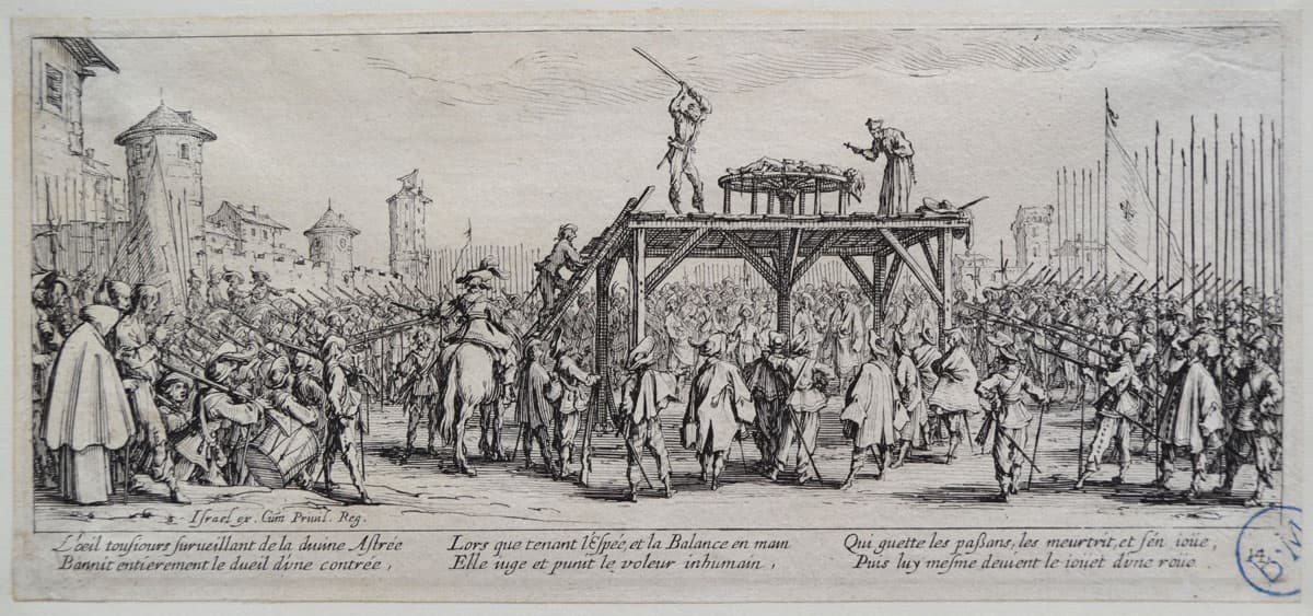 _ Appartient à la série des Grandes misères de la guerre, suite de 18 pièces, titre compris, datée de 1633. _ 2e état sur 3.