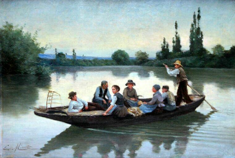 paysage ; scène (Freneuse, fleuve, Seine, barque, paysan, moisson)