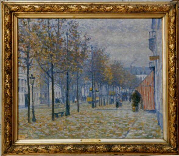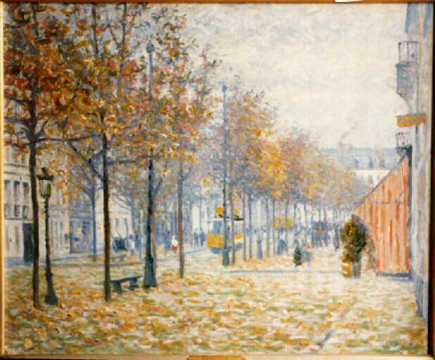 paysage (Rouen, rue, arbre, automne, réverbère, banc)
