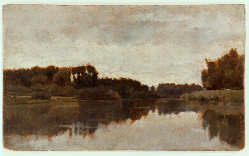 étiquette manuscrite, numéro, titre, au dos, n° 14. La Seine au Pecq