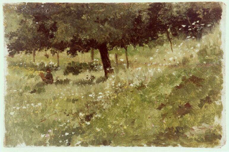 paysage (Villerville, prairie, arbre, personnage, peintre)