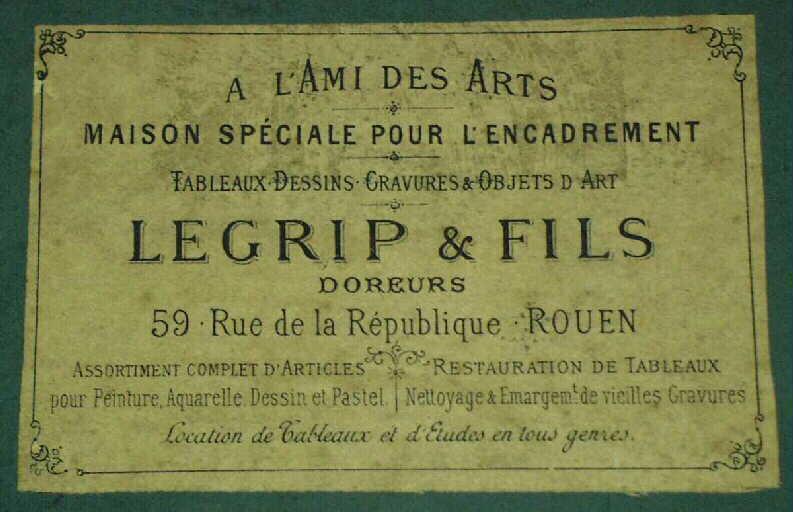 signature, en bas à gauche, Ch Frechon ; nom de marchand inscrit, au dos du carton support, Legrip et Fils Rouen