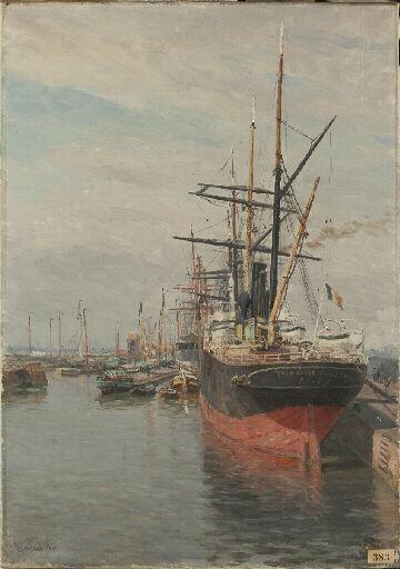 paysage (Belgique, port, Anvers, bateau à vapeur, voilier)