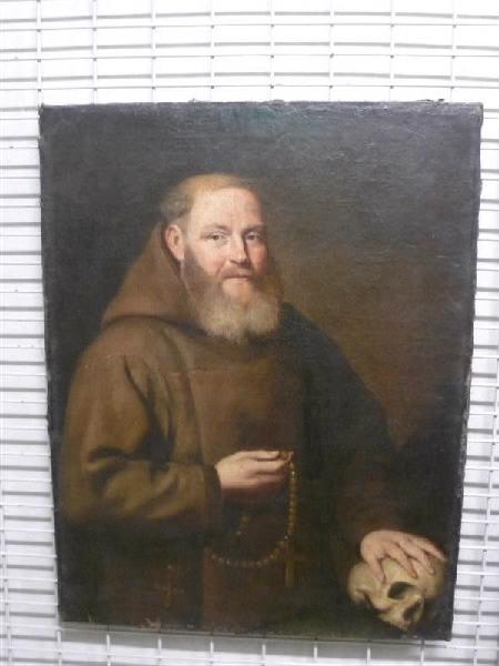 portrait d'inconnu (religieux, homme, à mi-corps, de face, barbe, chapelet, crâne)