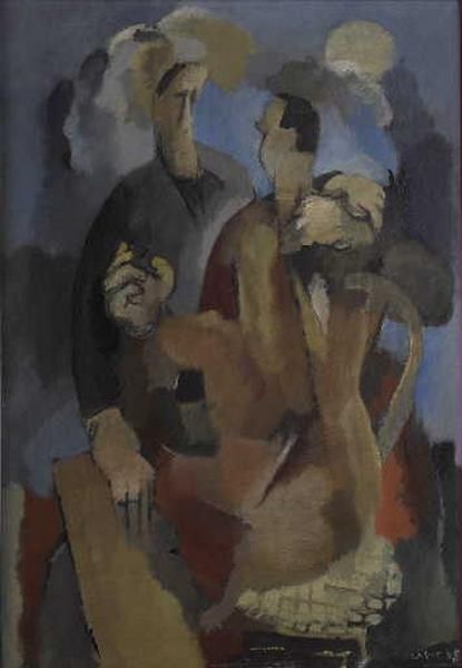 inscriptions, sur le châssis : Jeunes gens conversants. ; étiquette, au revers du châssis : D / 302 ; signé et daté, en bas à droite : J.LASNE 38