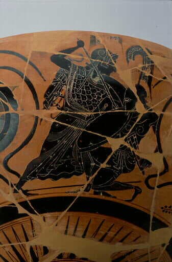 scène mythologique (combat, Athéna, géant, Encelade, ?, homme, satyre, Thésée, Minotaure, Gorgone)