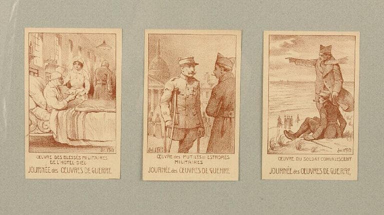 voir aussi : Oeuvre des mutilés et estropiés militaires (2004.0.35) Même série, Le foyer du soldat (2004.0.30) Même série, Le tricot du soldat (2004.0.31) Même série, Oeuvre des blessés militaires de l'Hôtel-Dieu (2004.0.34) Même série