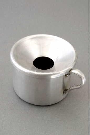 Récipient cylindrique muni d'une anse et d'un couvercle amovible en entonnoir