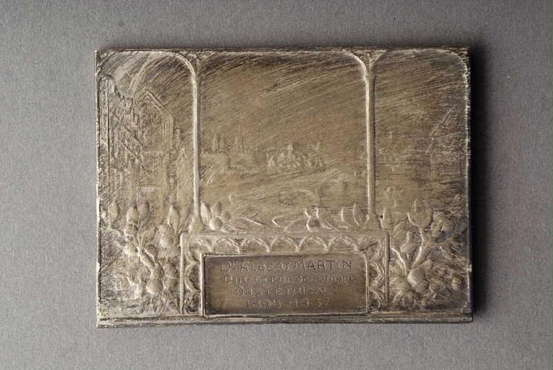 inscription concernant la représentation, avers : en haut : VILLE DE ROUEN ; signature, avers : en bas : HIPPOLYTE LEFEBVRE ; légende, revers : en bas : Dr ALBERT MARTIN DIRECTEUR DE CLINIQUE OBSTETRICALE 1895-1937