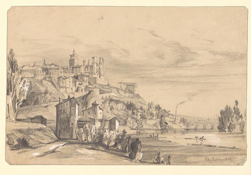 signé et daté en bas à droite : au crayon : Ch. Labor 1838 ; inscription, Au verso : Vue de Béziers