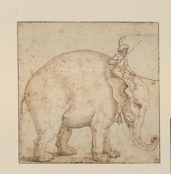 représentation animalière (éléphant d'Asie, homme, cornac)