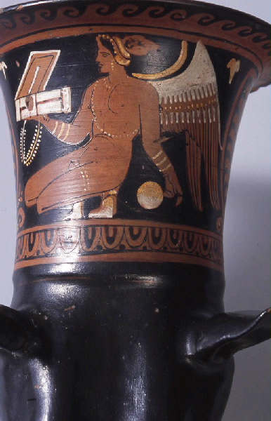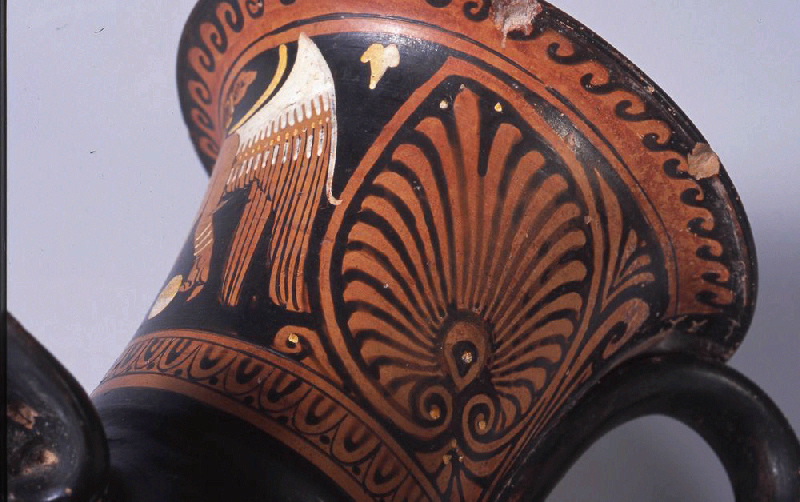 figure mythologique (Eros, lévrier) ; ornement à forme géométrique