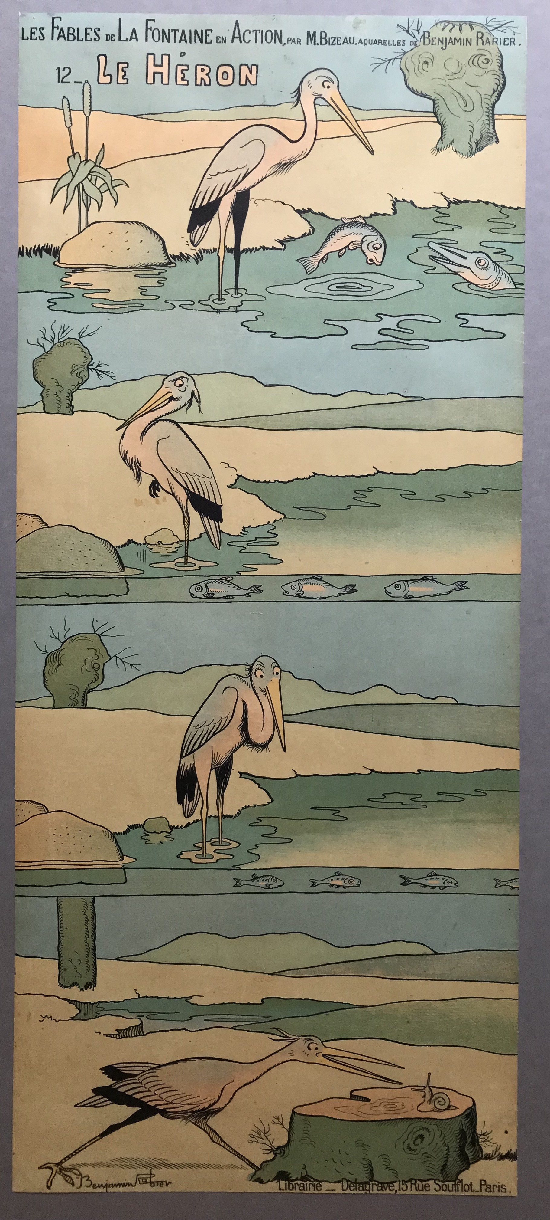 signature, en bas à gauche : Benjamin Rabier ; inscription, en bas : Librairie Delagrave, 15 rue Soufflet, Paris