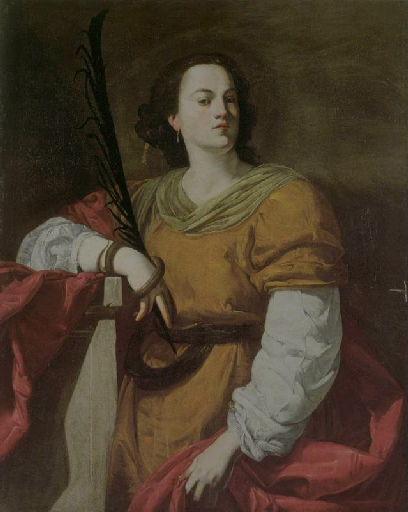 La toile représente sainte Christine, dont plusieurs attributs (le serpent et le flèche) rappellent le martyre symbolisé également par la longue palme. Selon La Légende dorée de Jacques de Voragine et d'autres sources, la sainte, issue d'une famille noble originaire de la ville de Bolsena (Toscane) et qui vécut sans doute au IIIème siècle, fut l'objet de maints supplices commandés par son propre père, incapable d'obtenir qu'elle sacrifie aux idoles : attachée à une roue, enfermée dans une tour, précipitée dans un lac avec une meule au cou puis plongée dans de l'huile bouillante, elle fut aussi jetée dans une fosse avec des serpents - les reptiles se contentèrent de la lécher! -, et devint enfin la cible d'archers, mais à chaque fois des interventions miraculeuses la protégèrent. Ce n'est qu'après cette longue série de sévices que le crâne de la jeune martyre fut finalement fendu. Autrefois donné à Andrea Sacchi (Nettuno, 1599 - Rome, 1661) par les catalogues du musée, le tableau pour lequel P. Pouncey (com. écrite) avait suggéré le nom du Napolitain Massimo Stanzione (Orta di Atella, vers 1585 - Naples, vers 1658) a été finalement rendu à un élève de ce dernier, Francesco Guarino, par Raffaello Causa et Pierre Rosenberg (com. écrite et orale, rapportées par Auffret, 1982-1932). Ainsi que l'a avancé Riccardo Lattuada (cat. exp. Naples, 1984-1985), cette figure, à l'expression fière et altière, est vraisemblablement le portrait d'une femme de la noblesse napolitaine qui a choisi de se faire représenter sous l'aspect de la sainte dont elle portait le prénom; de tels portraits aristocratiques, sous la forme d'allégories religieuses se référant aux saints patrons de leurs modèles, étaient fréquents à cette époque. Guarino lui-même en a réalisé plusieurs, comme une Sainte Cécile (Naples, Musée national de Capodimonte), qui passe pour être le portrait de Giovanna Frangipane della Tolfa, ou encore un Saint Georges (dépôt de la Banco di Napoli au Musée national de Capodimonte). Cette puissante silhouette, qui s'impose par sa stature autant que par sa calme détermination, soulignée encore par la forte présence lapidaire du dé qui lui sert d'appui, participe de la nombreuse série de saintes effigies, en demi-figure, produites par Guarino comme par bon nombre d'artistes napolitains du XVIIème siècle. Le tableau concentre une certaine sévérité (coloris sombres, fort clair-obscur, expression froide et distante de la sainte) et un grand raffinement (port élégant, mains délicates), qui témoignent des diverses influences dont bénéficie Guarino. Ce dernier synthétise parfaitement les enjeux de la peinture napolitaine vers le milieu du siècle, entre le naturalisme et le ténébrisme d'inspiration caravagesque, hérités de Ribera, et l'élégance proposée par Stanzione. Cette figure, sorte de transposition chrétienne de l'effigie païenne de Cléopâtre - autre malheureuse victime du serpent ayant inspiré les caravagesques napolitains -, fait également songer aux saintes peintes par le français Simon Vouet (Paris, 1590 - Paris, 1649) pendant son séjour en Italie ( 1612-1627); des oeuvres de cet artiste étaient en effet parvenues à Naples et des peintres comme Stanzione, Guarino ou Cavallino, ont pu y être sensibles (Auffret, 1982-1983). Lattuada (cat. exp. Naples, 1984-1985) propose une datation de la toile peu après 1640 du fait de son chromatisme; l'artiste utilisera des gammes plus éclatantes dans les dernières années de sa production. Notice de Matthieu Pinette