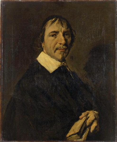 Le modèle de ce portrait est le pasteur Herman Langelius ; il pose ici vêtu d'un habit sombre rehaussé d'un rigide col blanc, coiffé d'une calotte, la main serrant un livre et l'index marquant la page. Célèbre à Amsterdam au XVIIe siècle, cet homme s'est particulièrement distingué par sa condamnation inlassable de l'athéisme et sa volonté de prêcher sans relâche la parole de Dieu qu'il utilisait, selon le poète contemporain Jeremias de Decker, comme une 'épée d'acier'. Parmi les épisodes qui lui sont rattachés, sa lutte sans répit pour faire condamner, confisquer les versions imprimées et empêcher la représentation de la tragédie Lucifer du dramaturge Vondel est sans doute le plus fameux. Cette toile, où le pasteur au regard pénétrant apparaît dans toute la rigueur de sa personnalité, a fait l'objet d'une gravure au XVIIe siècle par Blooteling, accompagnée par des poèmes de louanges en latin ('A tous, hérétiques, indécis et pêcheurs,/Il était tout, naufrage ou mer, guide ou tremblements de terre./Dans son coeur, un adepte de Dieu ; dans son âme, un rayon de lumière ; dans sa voix,/Un Paul dans toute son éloquence, une rare gloire à la communauté apostolique./Célibataire, il était marié à ses livres, c'était un homme qui/Consacra sa vie à élever des enfants pour les Cieux,/Telle - oh, c'est bien triste - était son apparence ici sur terre à Amsterdam.') et en néerlandais ('Loué par ses admirateurs, mais jamais comme il aurait dû l'être,/Sa grâce fait l'éloge de la divinité./La simple allusion à son nom lui fait honneur/Pour ses dons incomparables et sa suprême sagesse./A ses lèvres généreuses sont pendus des milliers/Qui maintenant, devant sa mort, doivent pousser des soupirs craintifs./Langelius, les dons qu'il fit à Sion,/Et en compagnie de Dieu, il cueille les fruits de l'été.') ; elle a également donné lieu à un texte satirique et polémique, à l'encontre de Hals, par Herman Frederick Waterloss ('Qu'essayes-tu, vieux Hals, de peindre Langelius ?/Tes yeux sont trop faibles pour le rayonnement de sa science/Et ta main engourdie est trop grossière et sans art/Pour exprimer l'intelligence sans pareille de cet homme et Professeur/Vante-toi donc à Haarlem de ton art et de tes premiers chefs-d'oeuvre,/Notre Amsterdam va maintenant témoigner avec moi,/Que tu n'as pas même compris la moitié, l'essence de cette lumière.'). Hals est l'un des plus grands portraitistes hollandais du temps. Auteur de portraits de groupe comme d'individus, on lui doit également des figures populaires qu'il dote d'expressions enjouées. Son travail évolue vers la fin de sa carrière vers une sobriété de plus en plus radicale, sur le plan chromatique comme stylistique, pour devenir presque austère ainsi qu'en témoigne notre toile, même si celle-ci dégage intensité et passion. cette puissante sérénité, cette touche libre et expressive, qui suscitent aujourd'hui l'admiration pour le travail d'un vieil artiste (Hals est âgé de près de quatre-vingt ans lorsqu'il peint l'effigie de Langelius) ont été parfois durement jugés par ses contemporains qui n'apprécient pas l'art novateur de Hals à la fin de son existence comme en témoigne le texte de Waterloos publié en 1660. Notice de Matthieu Pinette