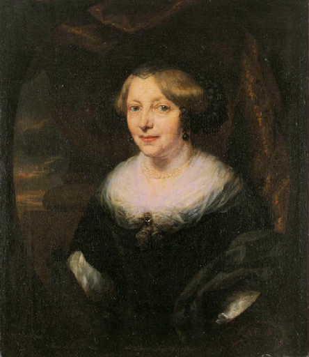 Dans un oculus se détache, sur fond de draperie et de colonne, le buste d'une femme d'âge mûr; elle est vêtue d'une robe de soie noire et ses épaules sont couvertes de gaze blanche; elle porte un collier de perles, des boucles d'oreilles et une coiffe. Après 1660, Maes se consacre exclusivement au genre du portrait. Etabli à Amsterdam en 1673, il devient l'un des portraitistes en vue de la société de la ville. La toile est un bon exemple de la manière raffinée et 'réaliste' du peintre. Ce tableau, dont la date a souvent été mal lue (1670 au lieu de 1679) n'est pas forcément (comme on l'a parfois prétendu) le pendant de Portrait d'un jeune gentilhomme cuirassé (M.P.Lav1894-24). Notice de Matthieu Pinette