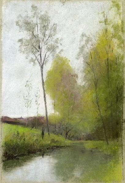 MICHEL : Paris, 1856 ; Rouen, 1915 ; pastelliste, fils du peintre Charles-Henri MICHEL. Félix Michel naît à Paris en 1856. Après ses études au Lycée Stanislas, à Paris, il entre aux Beaux-arts où, entre autres, il est l'élève d'Alexandre Cabanel. Il garde des liens avec la ville de Péronne où il a de la famille. Très attiré par les paysages qui sont en relation avec l'eau, il y peindra les étangs de la Somme et des vues du canal. Lors d'un séjour dans la région de Thiers, il fait toute une série de fusains sur le métier de coutelier. Il s'installe comme confiseur à Rouen vers la fin du dix-neuvième siècle. Cela ne l'empêche pas de continuer sa production de pastels et de dessins, en majorité des paysages. Il fréquente le Cercle Artistique de Rouen et est l'ami du collectionneur de ferronnerie Henri Le Secq des Tournelles. Félix Michel meurt à Rouen en 1915. (notice écrite en 2009 par Charles-Henry MICHEL, petit-fils du peintre homonyme et neveu de Félix MICHEL).