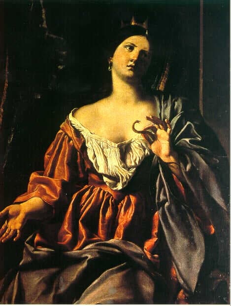 représentation humaine ; scène historique (peinture d'histoire, Cléopâtre, femme, animal, serpent, mort)
