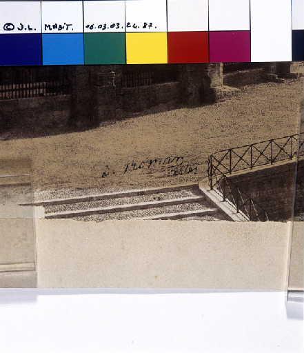 Epreuve sur papier salé, contrecollé sur un carton. Encollage additionnel du papier à l'albumine ou plus vraisemblablement à la gélatine. Retouches éparses -