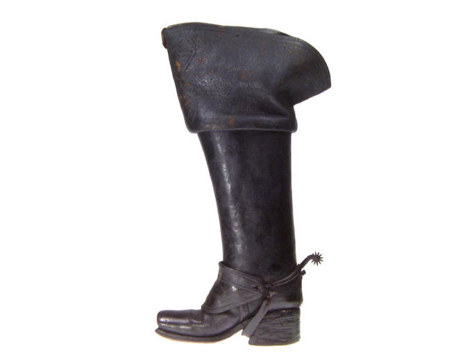 Botte à bonnet en cuir avec éperon. Décor de piqûres.