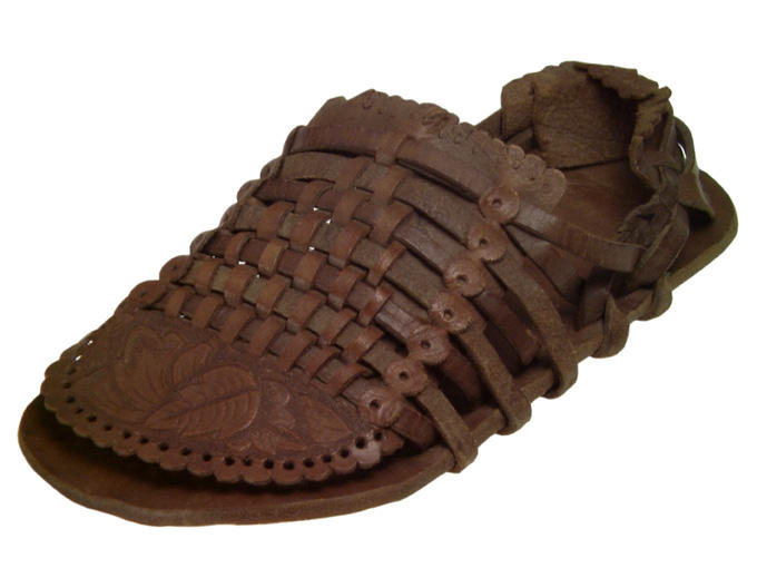Sandale pour homme: cactlis en cuir avec plastron gaufré et tressé. Pied gauche