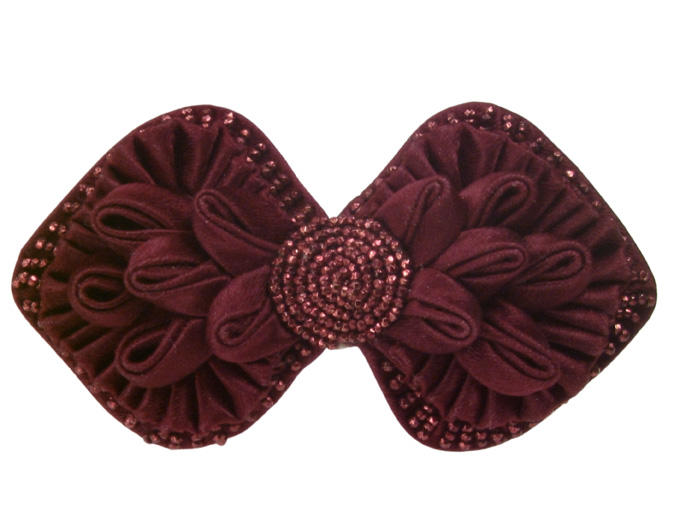 Noeud de chaussure pour femme. Noeud papillon avec bouillonnés. Bord et centre ornés de perles en acier teinté.