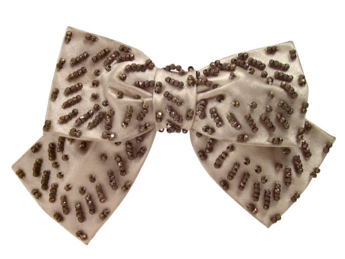 Noeud de chaussure pour femme. Noeud papillon en satin ivoire orné de perles en acier.