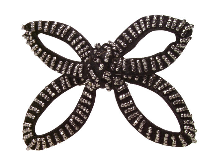 Noeud de chaussure pour femme. Noeud papillon en satin noir entièrement perlé acier.