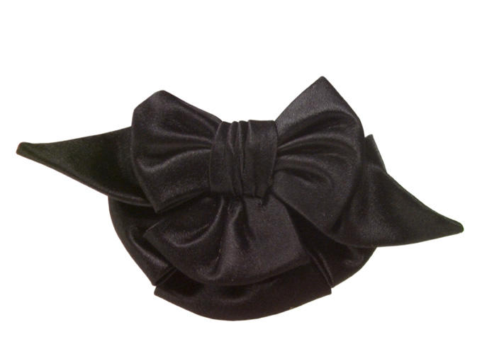 Noeud de chaussure pour femme. Noeud papillon en satin noir avec plissés.