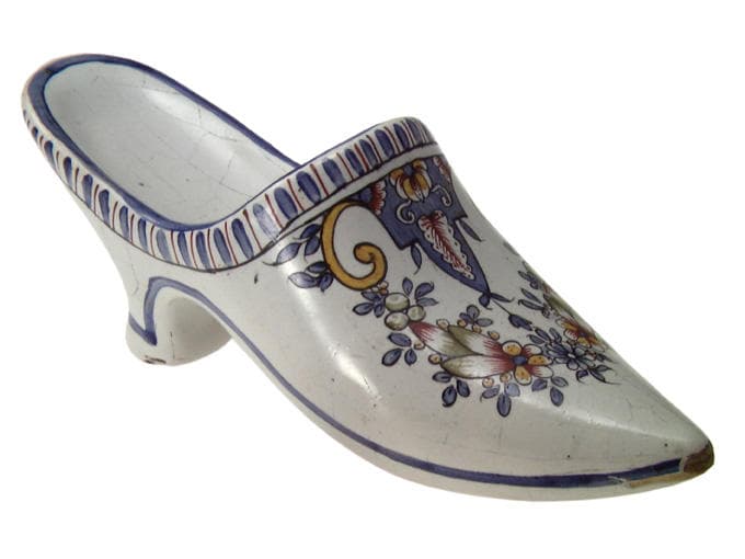 représentation d'objet (chaussure) ; ornement à forme végétale (fleur)