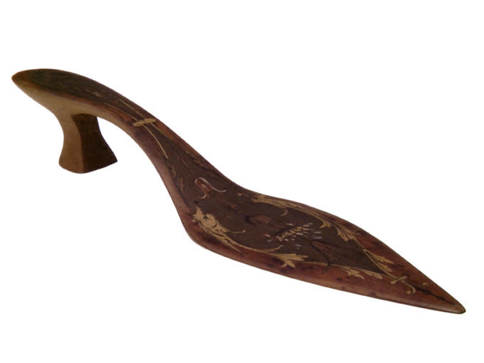 En forme de semelle munie d'un talon