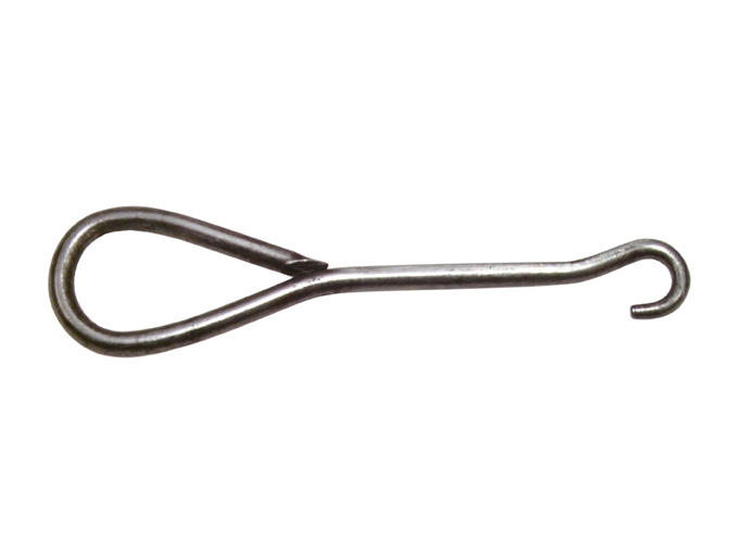 Tire-boutons pour gants, réalisé dans une tige en métal nickelé, repliée pour former le crochet et le manche. Prefix numbers (Buttonhook Society Archives) : 36 (Plated chromium)