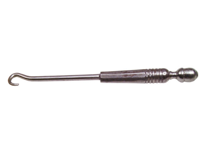 Tire-boutons pour gants en métal chromé. Petit manche façonné. Prefix numbers (Buttonhook Society Archives) : 36 (Plated chromium)