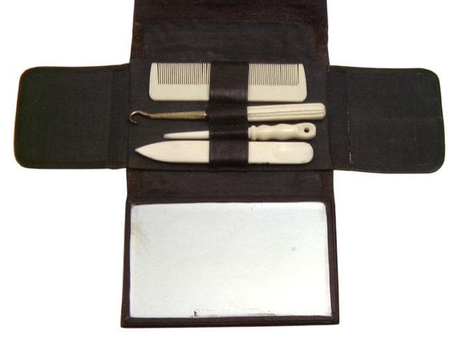 nécessaire de toilette (ensemble) ; repousse cuticule ; passe-lacet ; peigne ; crochet à bottines