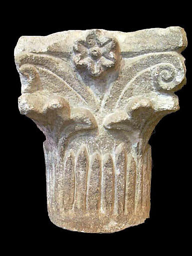 Etat moyen ; Manques : 2 angles d'abaque, une volute ; Bonne cohésion. Pièce posée sur un socle haut.