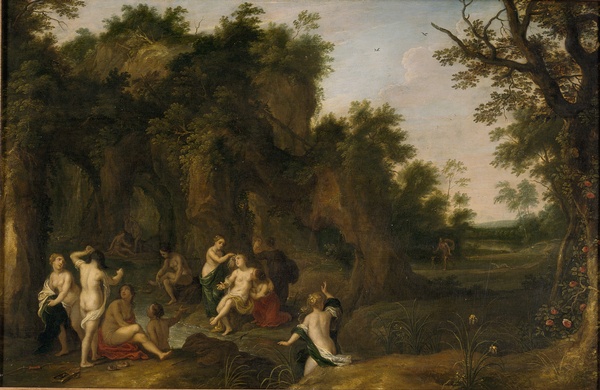 Cette oeuvre serait une production de l'atelier de van Balen; le paysage serait de Abraham Govaerts