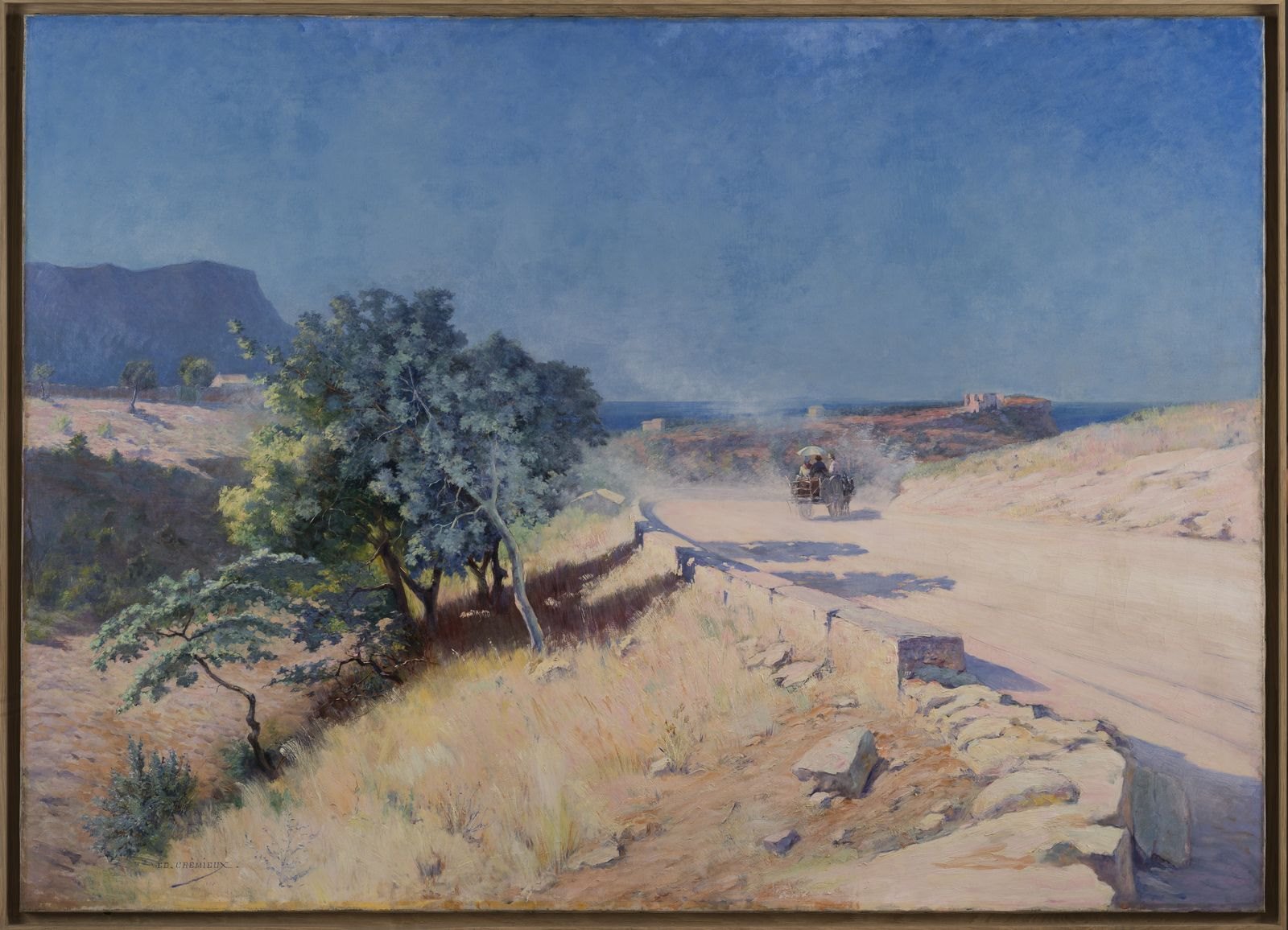 Signature, Date, En bas à gauche : De couleur bleue., Ed. Crémieux / 1900 ; Mention manuscrite, Au revers : A l'encre noire sur la barre du châssis., A2 ; Tampon, Au revers : A l'encre noire sur la barre centrale du châssis côté gauche., Salon de 1900 ; Mention manuscrite, Au revers : A l'encre noire sur la barre du châssis du centre en haut., Crémieux