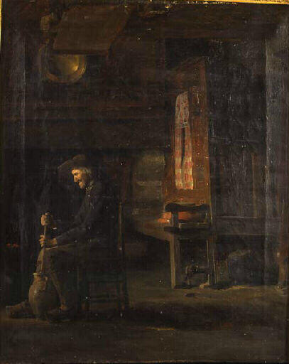 vue d'intérieur ; scène (Pont-Aven, Breton, beurre, homme, fabrication)