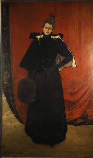 portrait (Gervex Mme, femme, manteau, fourrure, rideau)