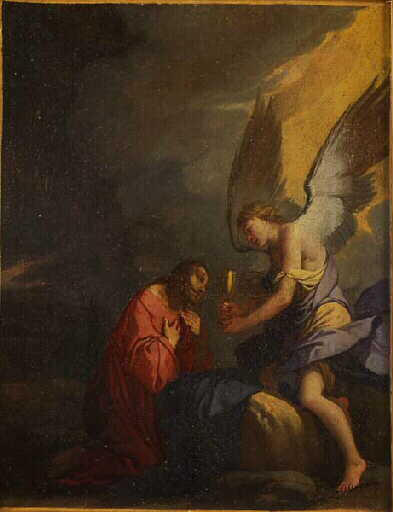 scène biblique (Christ, Jardin des oliviers, ange, calice)