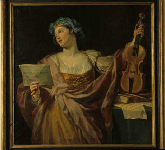 figure (art de la musique, allégorie, violon, partition, femme, turban)