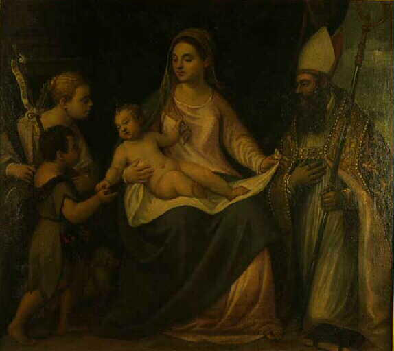Vierge à l'enfant avec trois saints : Ste Cécile, St Jean Baptiste et un évêque