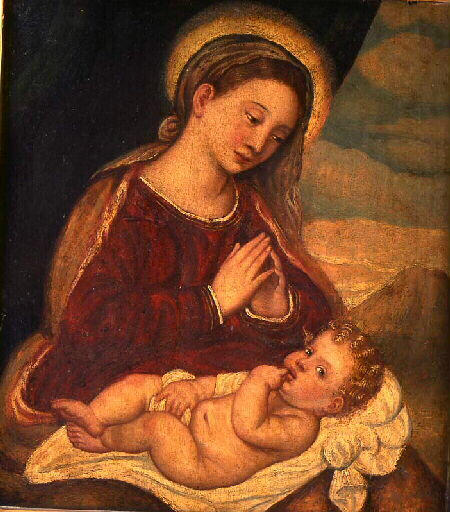 scène biblique (Vierge à l'Enfant, Vierge : à mi-corps, Enfant Jésus : nu)