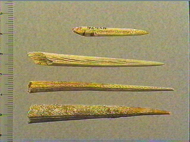 Face supérieure : longue incision courbe et quatre stries obliques.