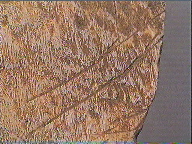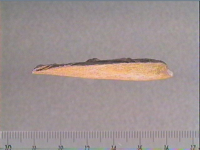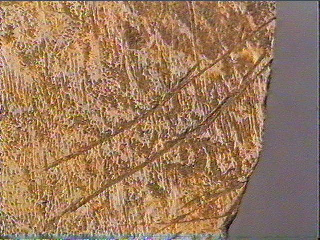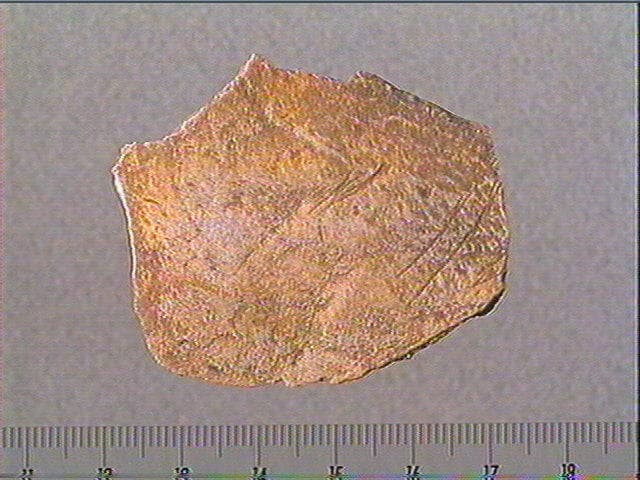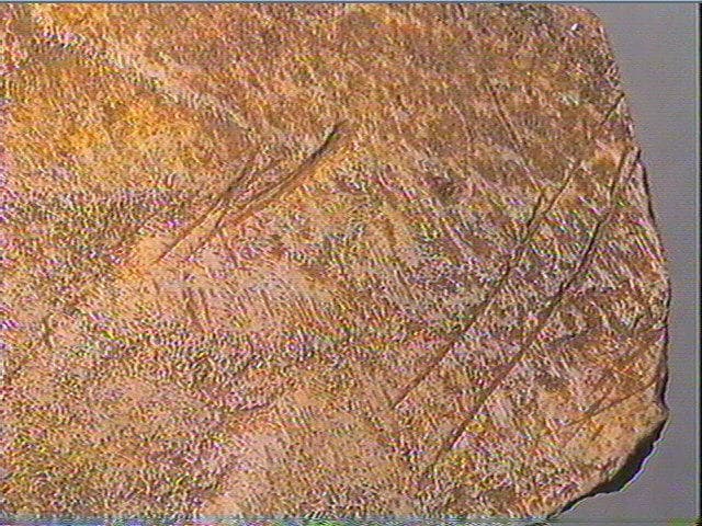 Os plat. Stries obliques. Chollot pensait qu'il pouvait s'agir d'une tête d'équidé (encolure et partie inférieure de la tête).