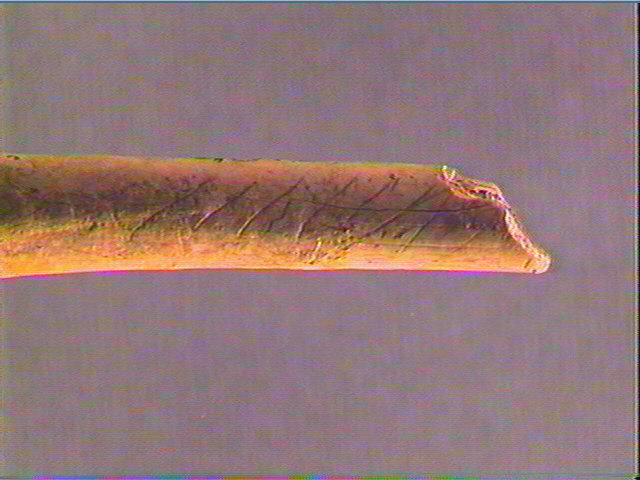 Sur une face, traits obliques alignés