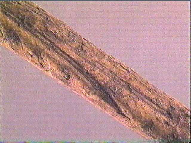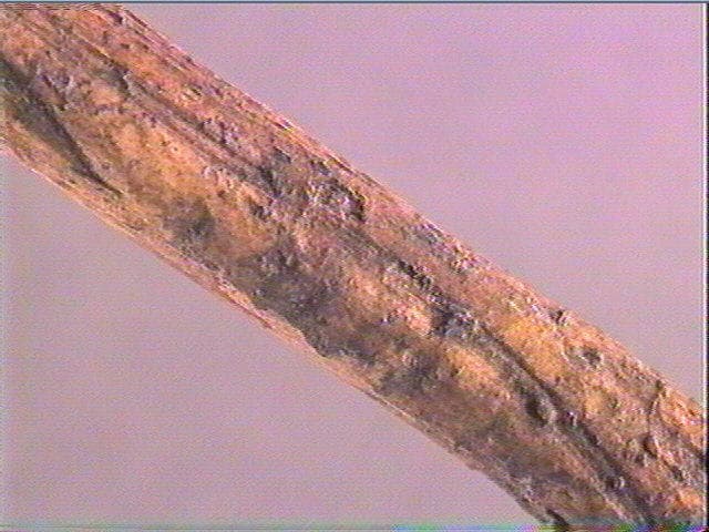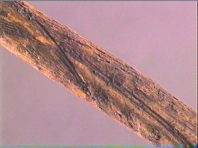 Longues lignes obliques et parallèles, traversant le fût
