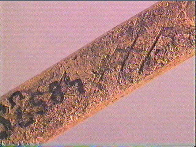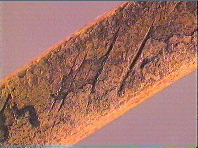 Sur une face, traits obliques alignés